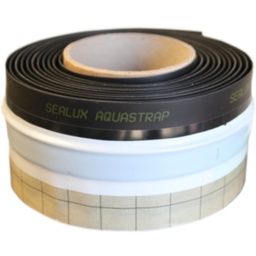 Aquastrap is made up of a flexible EPDM up-stand, high tack adhesive and sealant isolating membranes. It is an easy-fit flexible seal that ensures a waterproof joint between a wall and an adjacent edge (e.g Shower Tray). Usually, it is fitted to a bath, shower tray or worktop that requires a waterproof joint to be maintained.