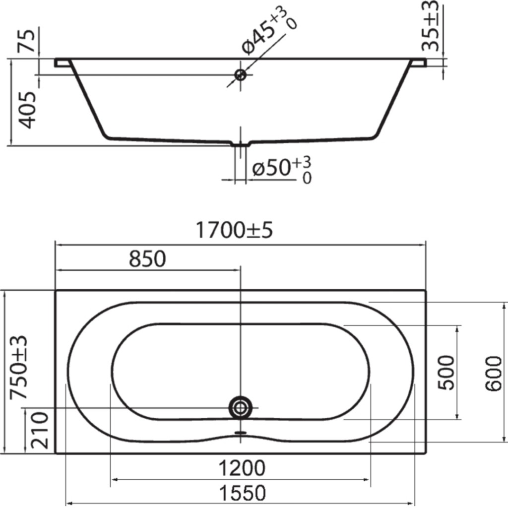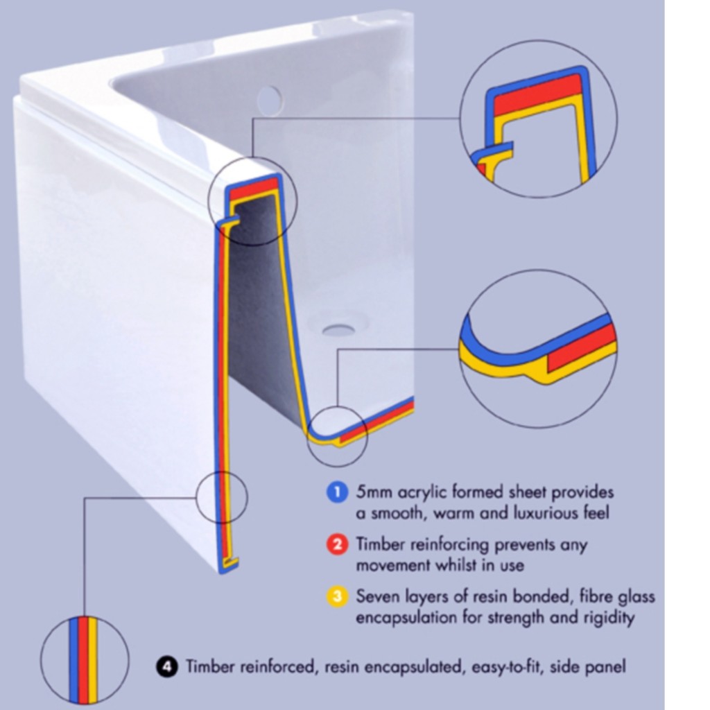 - Capacity: 175 litres for (1700mm x 750mm) 190 litres for (1800mm x 800mm)